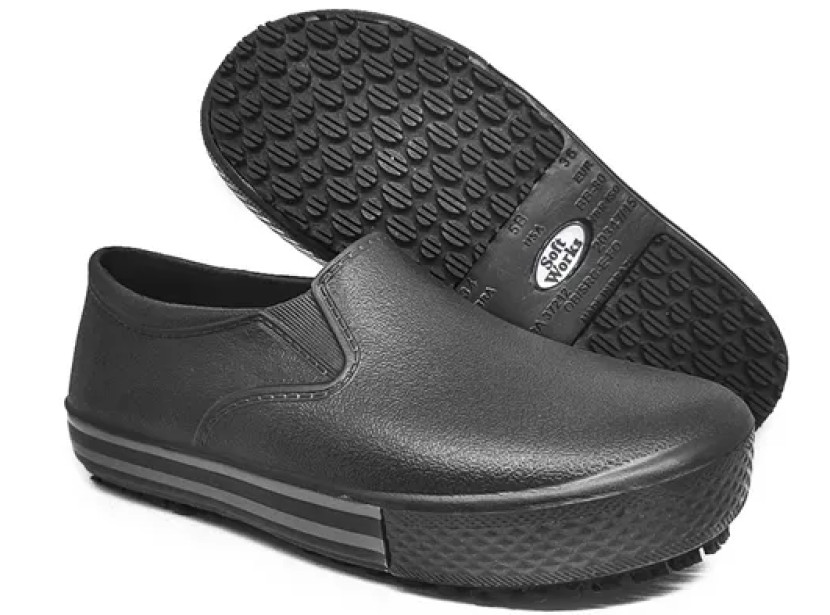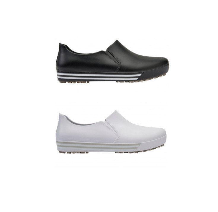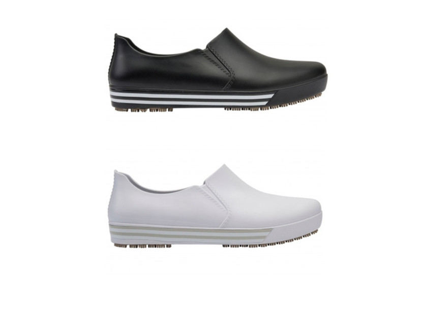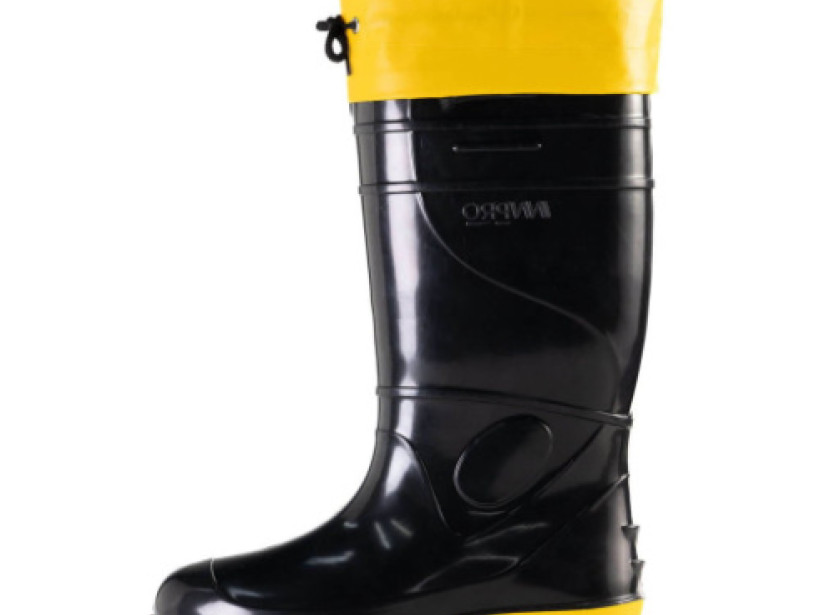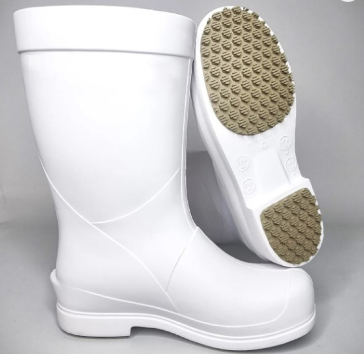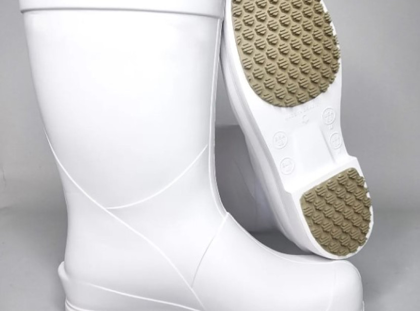 Calçado para proteção dos pés contra umidade, agentes abrasivos e escoriantes, totalmente impermeável, confeccionado em material polimérico na cor branca, com solado de borracha vulcanizada antiderrapante, absorção de energia no calcanhar e solado resistente ao escorregamento.