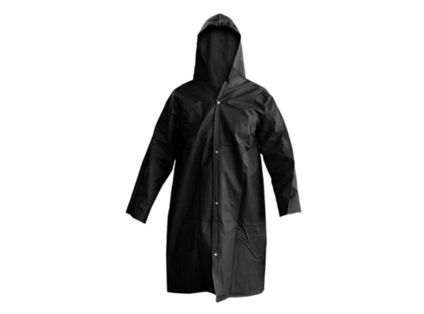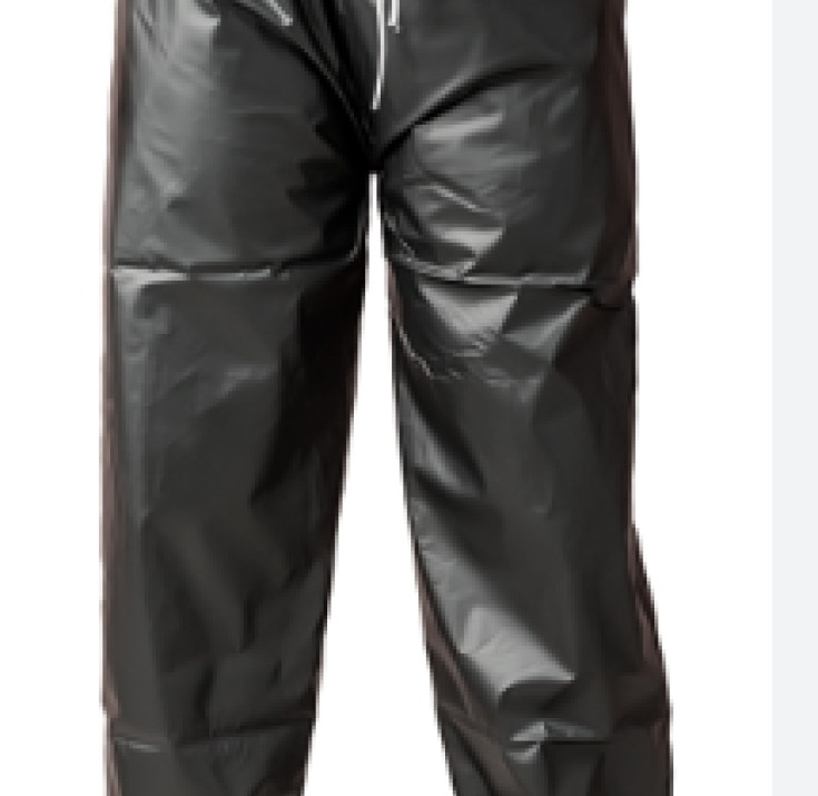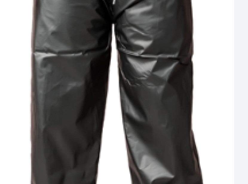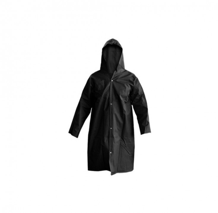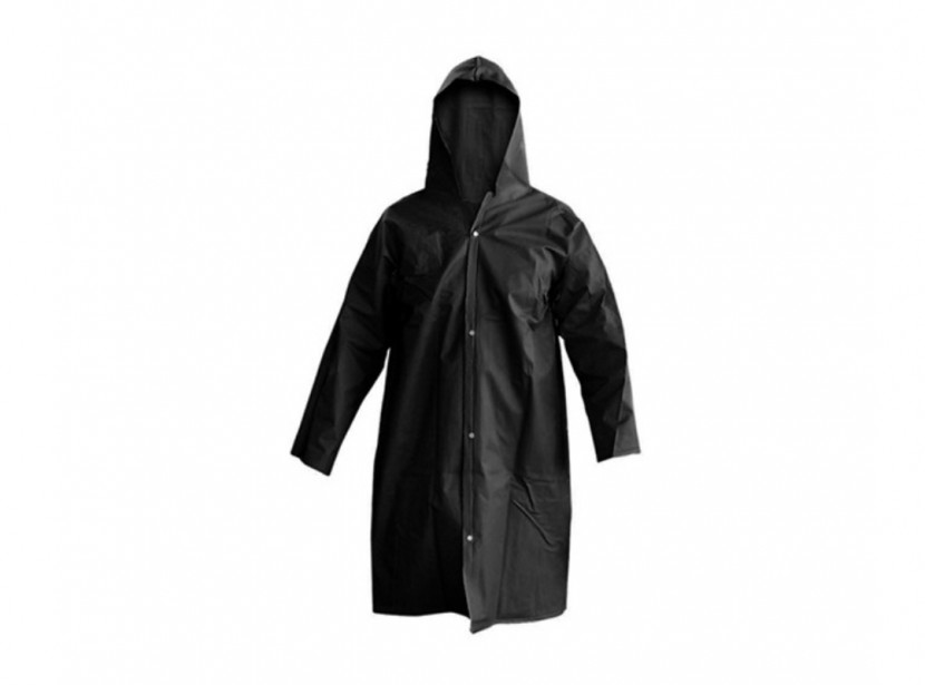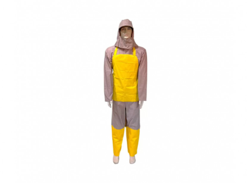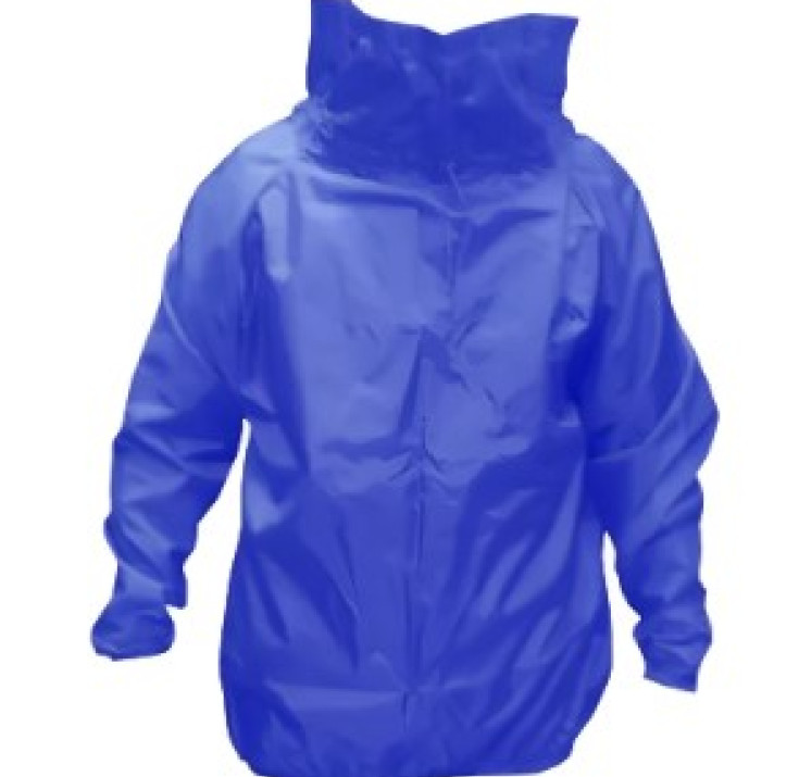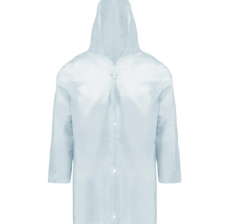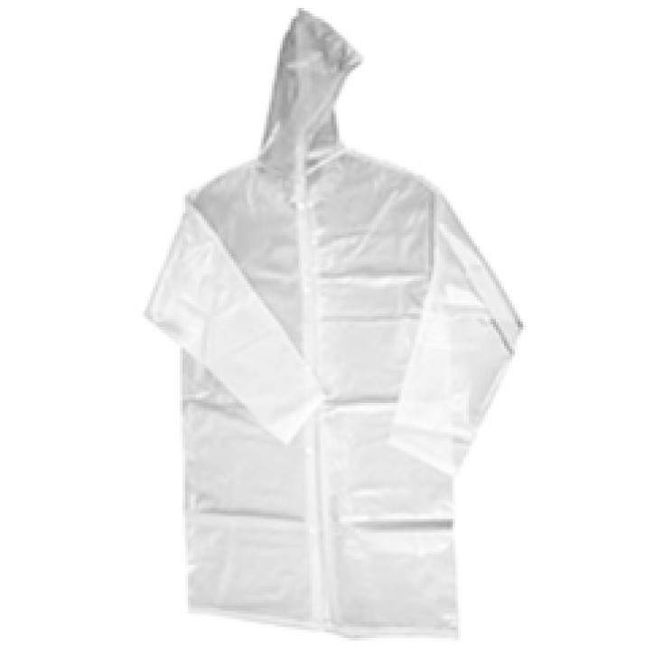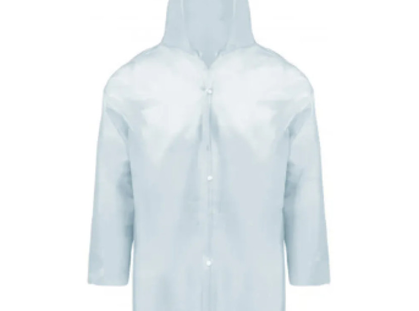 Capa de segurança confeccionada em tecido sintético plastificado com PVC e forro de poliéster, capuz conjugado, com mangas longas, fechamento frontal através de botões de pressão e costura através de solda eletrônica.
